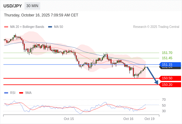 在 151.15 之下,看跌,目标价位为 150.50 ,然后为 150.20 。