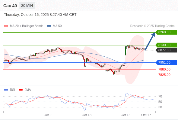 Cac 40 当日内: 上升趋势。