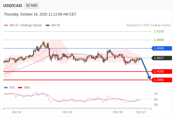 在 1.4060 之下,看跌,目标价位为 1.4005 ,然后为 1.3985 。