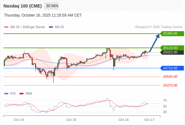 在 24710.00 之上,看涨,目标价位为 25110.00 ,然后为 25390.00 。