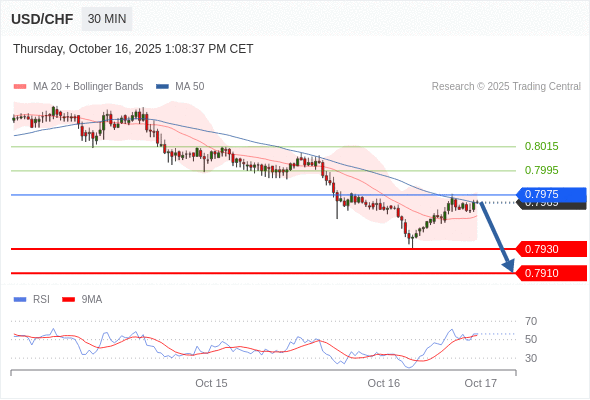 在 0.7975 之下,看跌,目标价位为 0.7930 ,然后为 0.7910 。