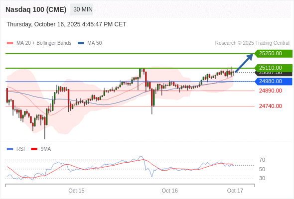 在 24980.00 之上,看涨,目标价位为 25110.00 ,然后为 25250.00 。