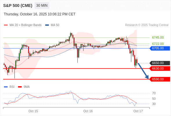交易策略: 在 6705.00 之下,看跌,目标价位为 6630.00 ,然后为 6590.00 。