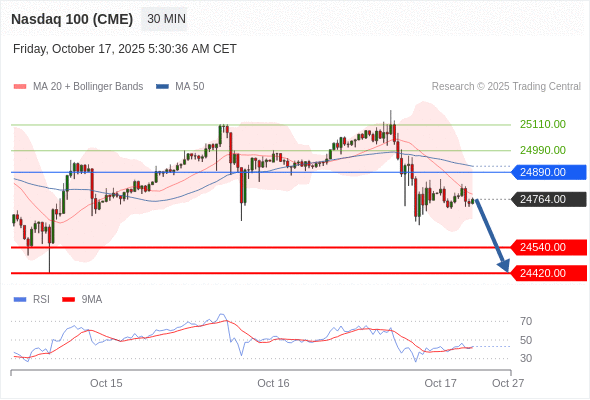 在 24890.00 之下,看跌,目标价位为 24540.00 ,然后为 24420.00 。