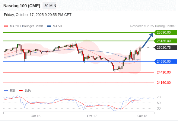 在 24680.00 之上,看涨,目标价位为 25185.00 ,然后为 25390.00 。