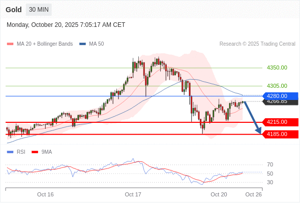 黄金现货 当日内: 短期关键阻力位在4280.00。
