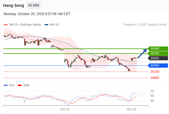 在 25460 之上,看涨,目标价位为 26100 ,然后为 26360 。
