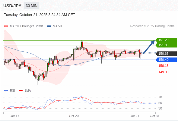 在 150.40 之上,看涨,目标价位为 151.00 ,然后为 151.20 。