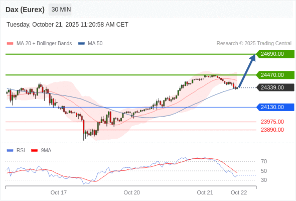 在 24130.00 之上,看涨,目标价位为 24470.00 ,然后为 24690.00 。
