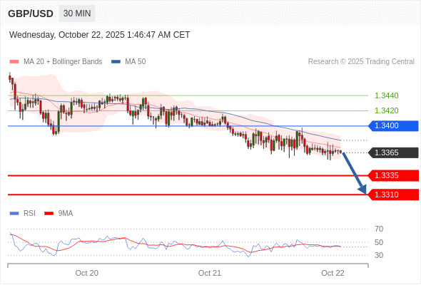 在 1.3400 之下,看跌,目标价位为 1.3335 ,然后为 1.3310 。