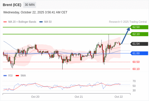 在 61.00 之上,看涨,目标价位为 62.10 ,然后为 62.50 。