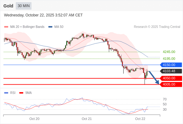 在 4150.00 之下,看跌,目标价位为 4050.00 ,然后为 4005.00 。