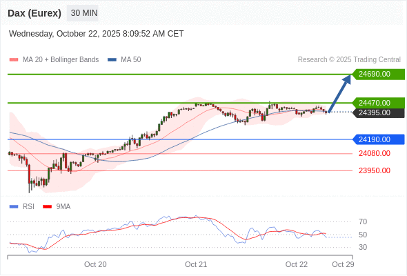 在 24190.00 之上,看涨,目标价位为 24470.00 ,然后为 24690.00 。