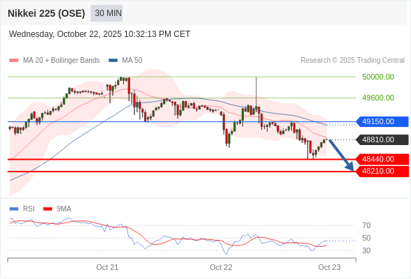 在 49150.00 之下,看跌,目标价位为 48440.00 ,然后为 48210.00 。