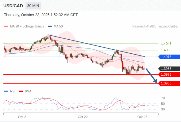 在 1.4015 之下,看跌,目标价位为 1.3975 ,然后为 1.3955 。