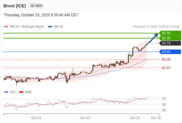 在 63.85 之上,看涨,目标价位为 65.35 ,然后为 65.90 。