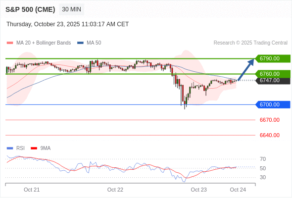 在 6700.00 之上,看涨,目标价位为 6760.00 ,然后为 6790.00 。