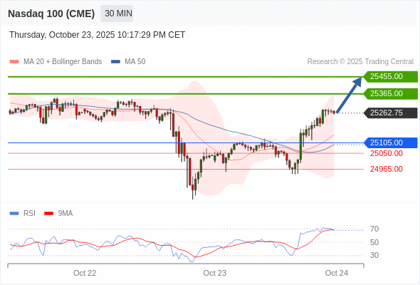 在 25105.00 之上,看涨,目标价位为 25365.00 ,然后为 25455.00 。