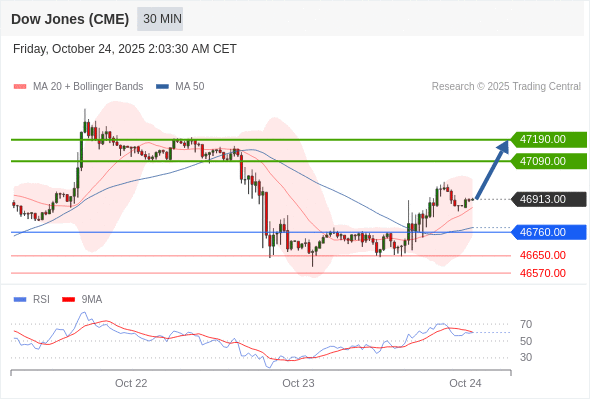 在 46760.00 之上,看涨,目标价位为 47090.00 ,然后为 47190.00 。