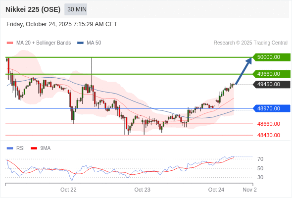 在 48970.00 之上,看涨,目标价位为 49660.00 ,然后为 50000.00 。
