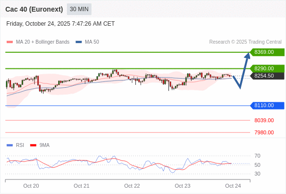 法国CAC指数期货 (Euronext) (X5) 当日内: 在8110.00之上,看涨。