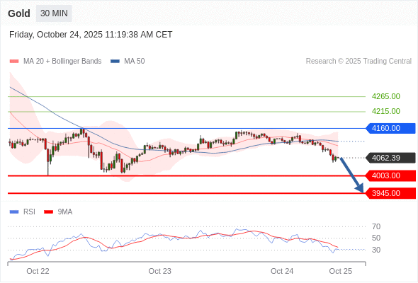 在 4160.00 之下,看跌,目标价位为 4003.00 ,然后为 3945.00 。