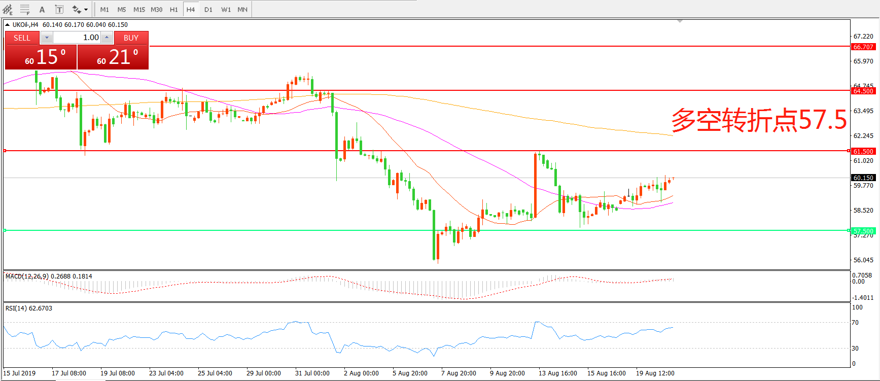 交易策略:在57.50之上看涨,目标61.50 64.50