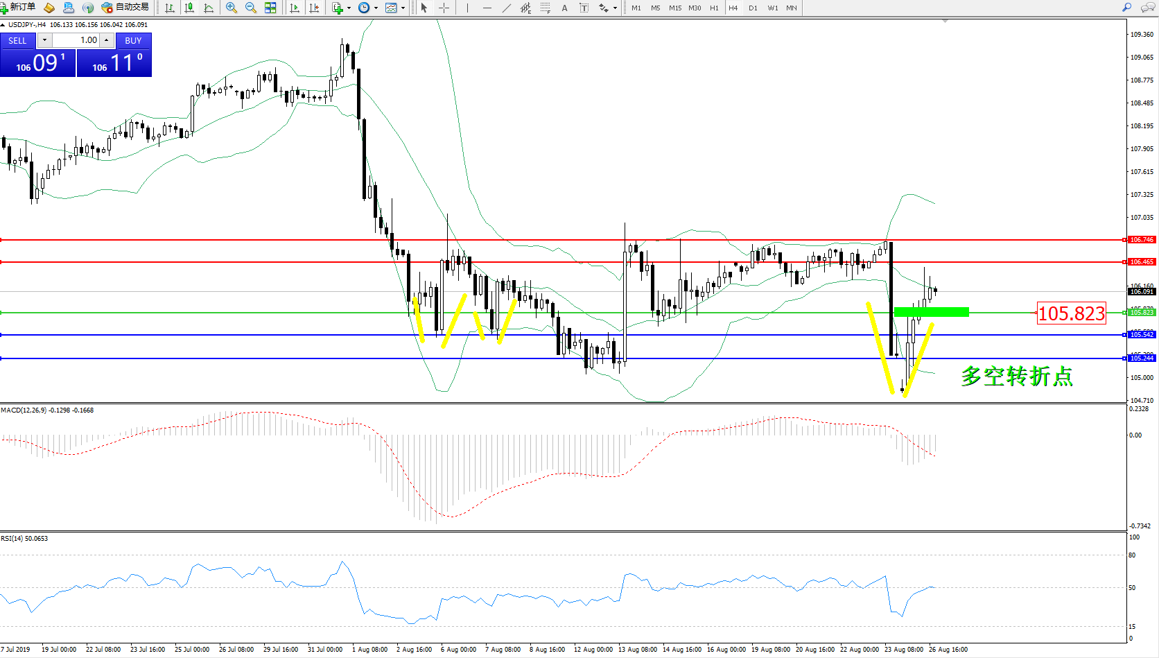 交易策略:105.823上方看涨,目标106.465106.746