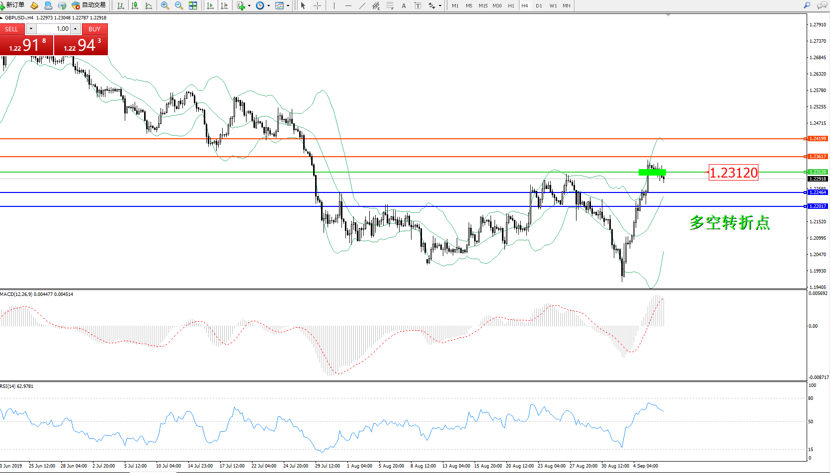 备选策略:1.23120上方看涨,目标1.23617、1.24199