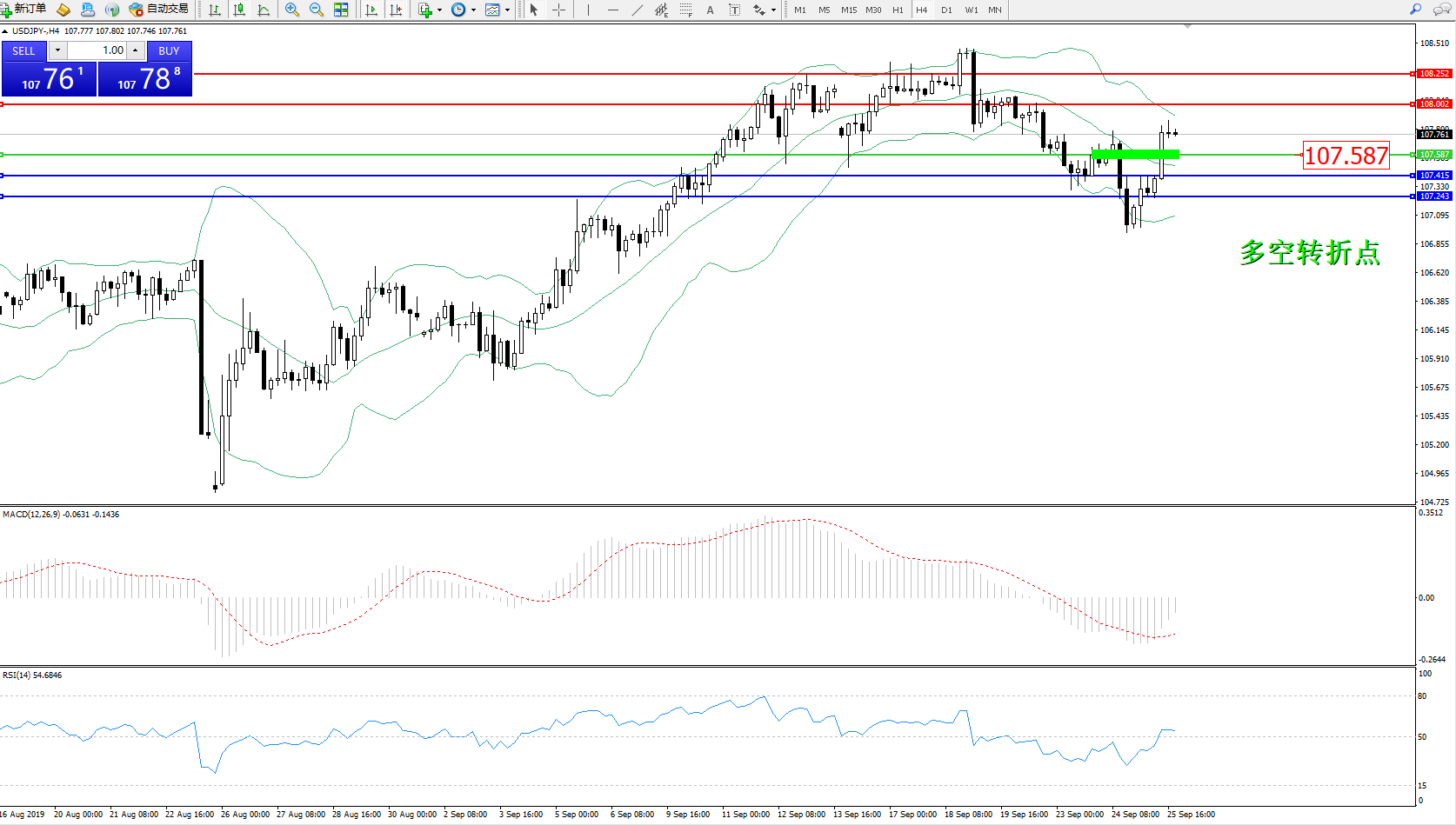 技术点评:高位震荡下行后得到支撑,多头开始反攻,突破布林带指标中轨附近压制进入中上轨区间高位震荡中,布林带指标收口后有横盘整理平移迹象,MACD指标空头区域低位缓慢回升至0轴下方徘徊,RSI指标突破50均衡线后进入多头区域维持窄幅震荡;
