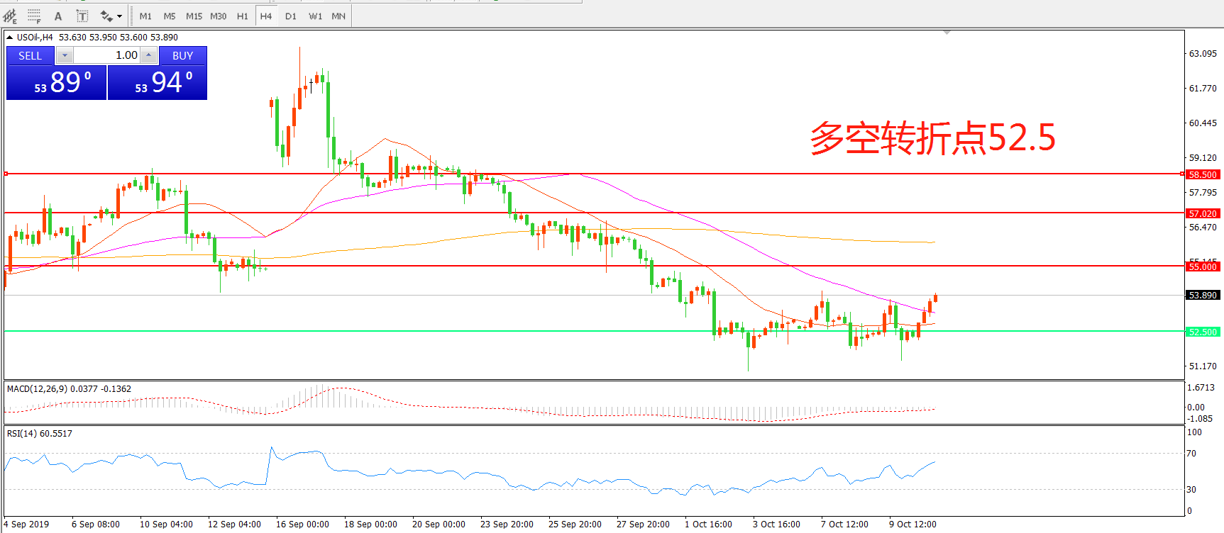 多空转折点:52.50