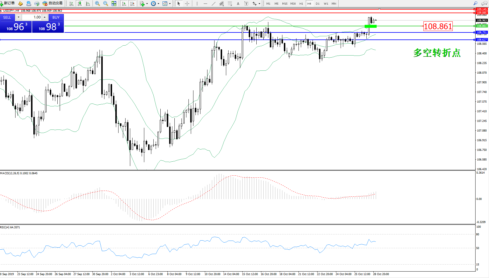 技术点评:多头持上攻突破布林带指标上轨压制后维持高位震荡整理中,有回归上轨内侧走势迹象,且布林带指标有张口的态势,MACD指标处于0轴上方多头区域呈缓慢上行走势,RSI指标处于多头区域维持震荡上行中;