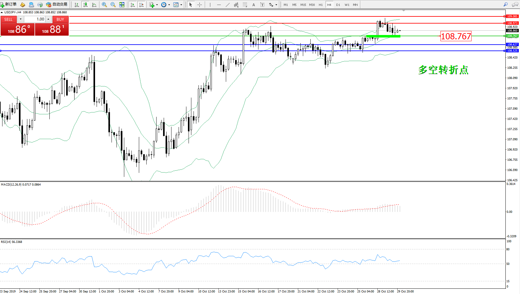 交易策略:108.767上方看涨,目标108.973、109.085