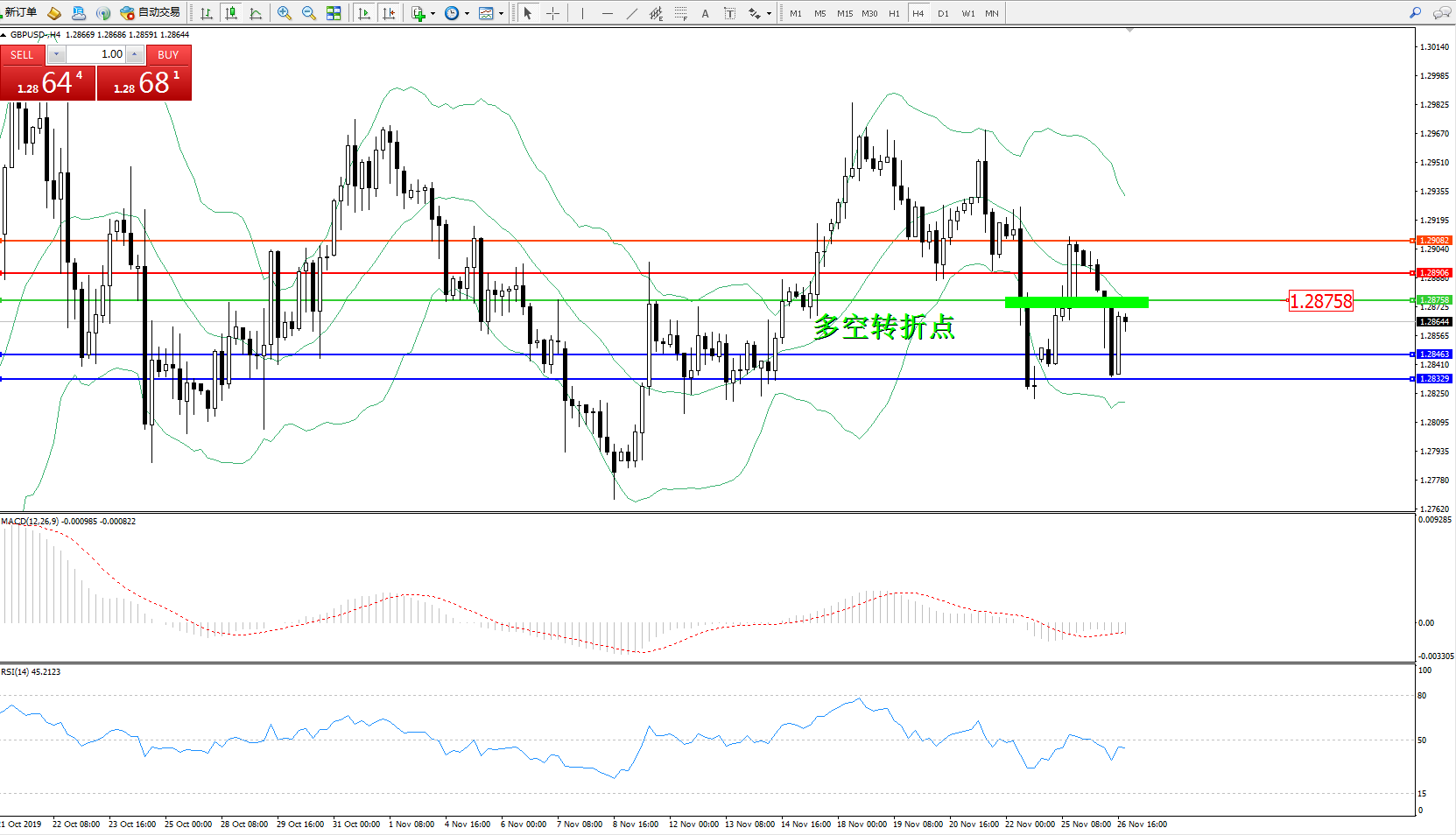 备选策略:1.28758上方看涨,目标1.28906、1.29082