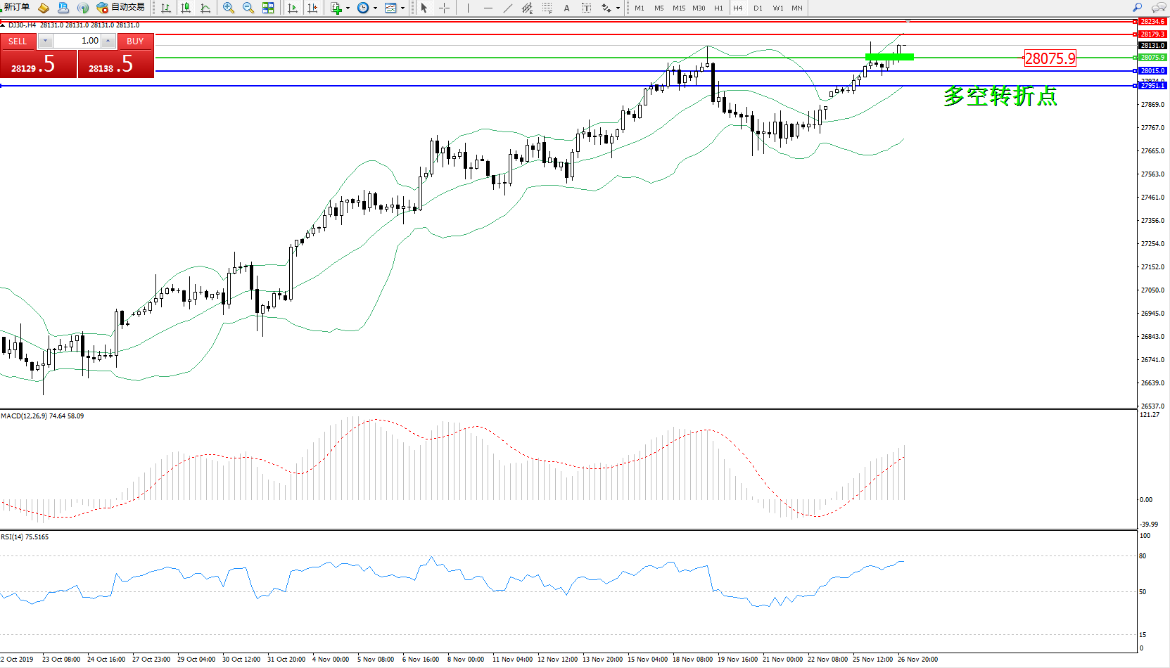 道琼斯指数1126日(周二)收盘上涨54.40点,涨幅0.19%,报28120.86点。零售板块领涨。感恩节销售旺季将至,国际贸易谈判进展的消息与鲍威尔对美国经济状况的积极评价提振了市场信心。美联储卡普兰表示,只有看到前景发生重大变化的情况下,他才会支持调整利率。美联储主席鲍威尔称,只要接下来发布的数据总体符合我们的预期,我们便认为当前的货币政策立场可能依然适宜”。