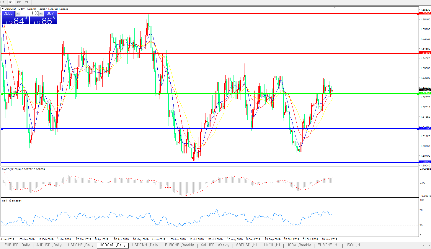 美元兑加元USDCAD    日线图: