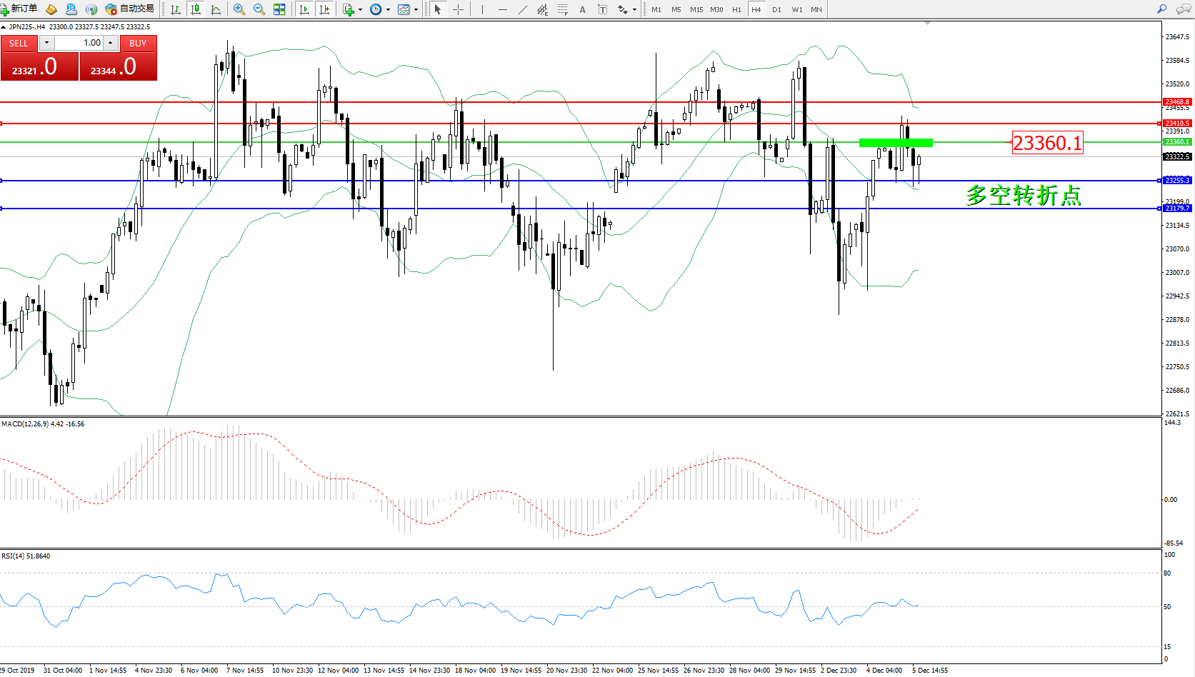 技术点评:宽幅震荡走势持续,低位震荡上行至布林带指标中上轨区间整理中,且布林带指标处于收口走势中,但低位反转上行动力并未完全改变弱势,MACD指标空头区域低位缓慢上行至0轴线附近徘徊,RSI指标处于50均衡线附近弱势整理中;