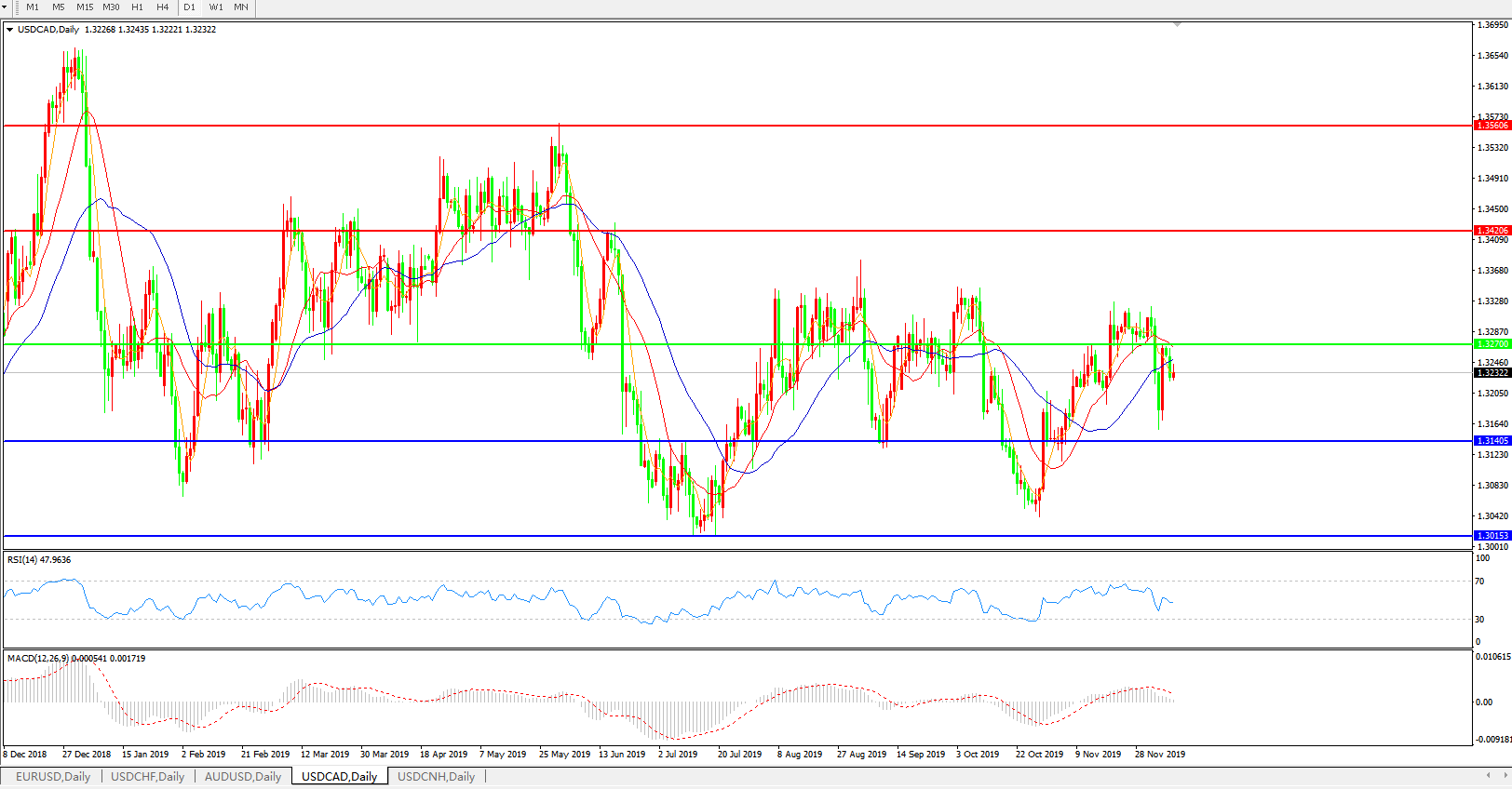 美元兑加元USDCAD    日线图: