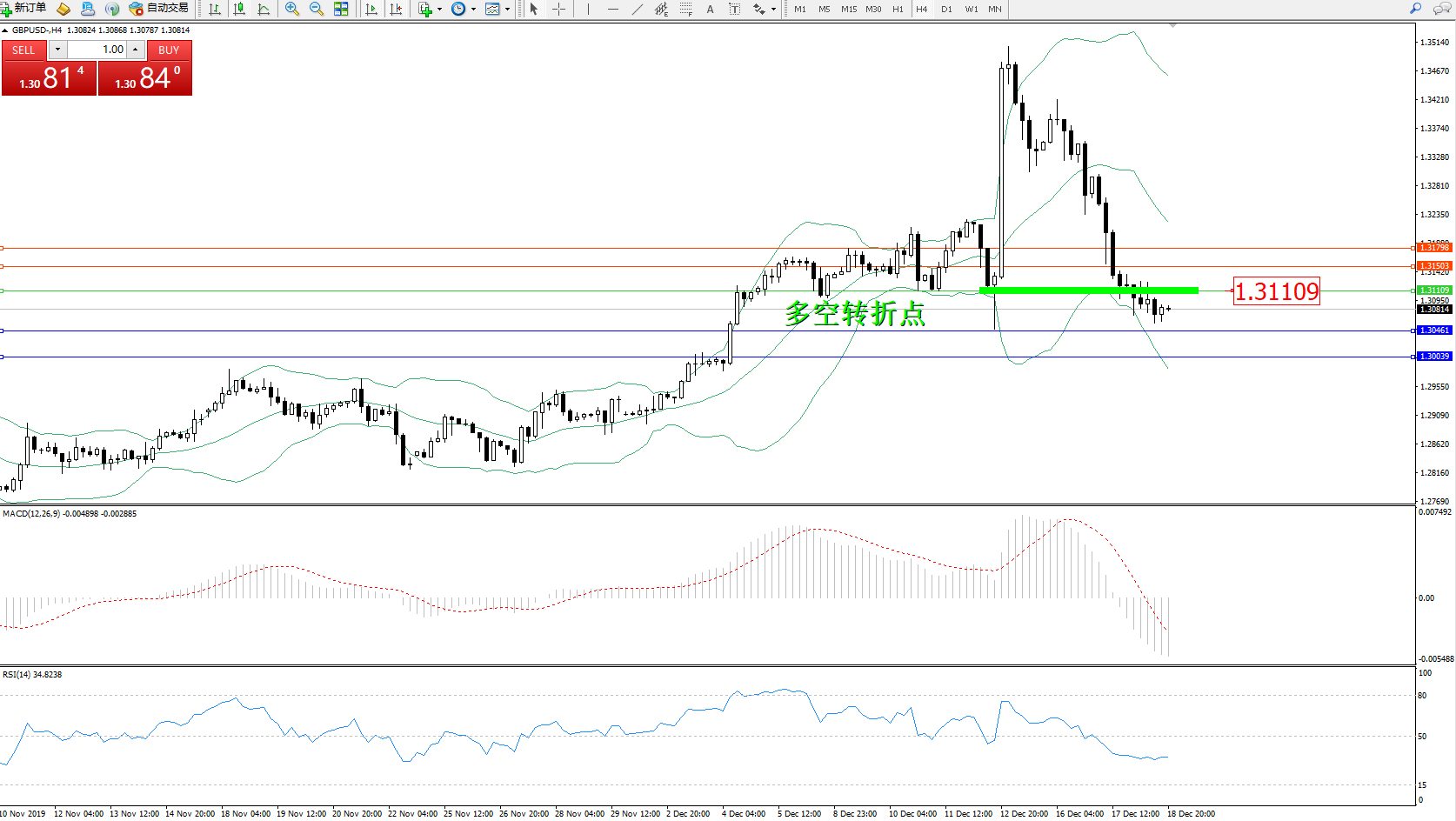 备选策略:1.31109上方看涨,目标1.31503、1.31798