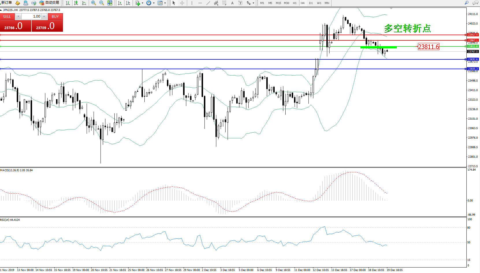日经225指数12月19日(周四)收盘下跌52.43点,跌幅0.22%,报23882.00点。北京时间12月19日(周四)10:45,日本央行宣布维持-0.1%利率不变,因政府推出的刺激计划、中美贸易谈判取得进展以及全球经济放缓触底的迹象提振了经济前景。中美达成第一阶段贸易协议、全球制造业数据企稳、英国脱欧前景改善,给了日本央行行长黑田东彦时间来评估首相安倍晋三1200亿美元的财政刺激方案将如何提振经济。销售税上调、出口低迷以及超级台风造成的破坏令日本经济眼下的处境不佳。