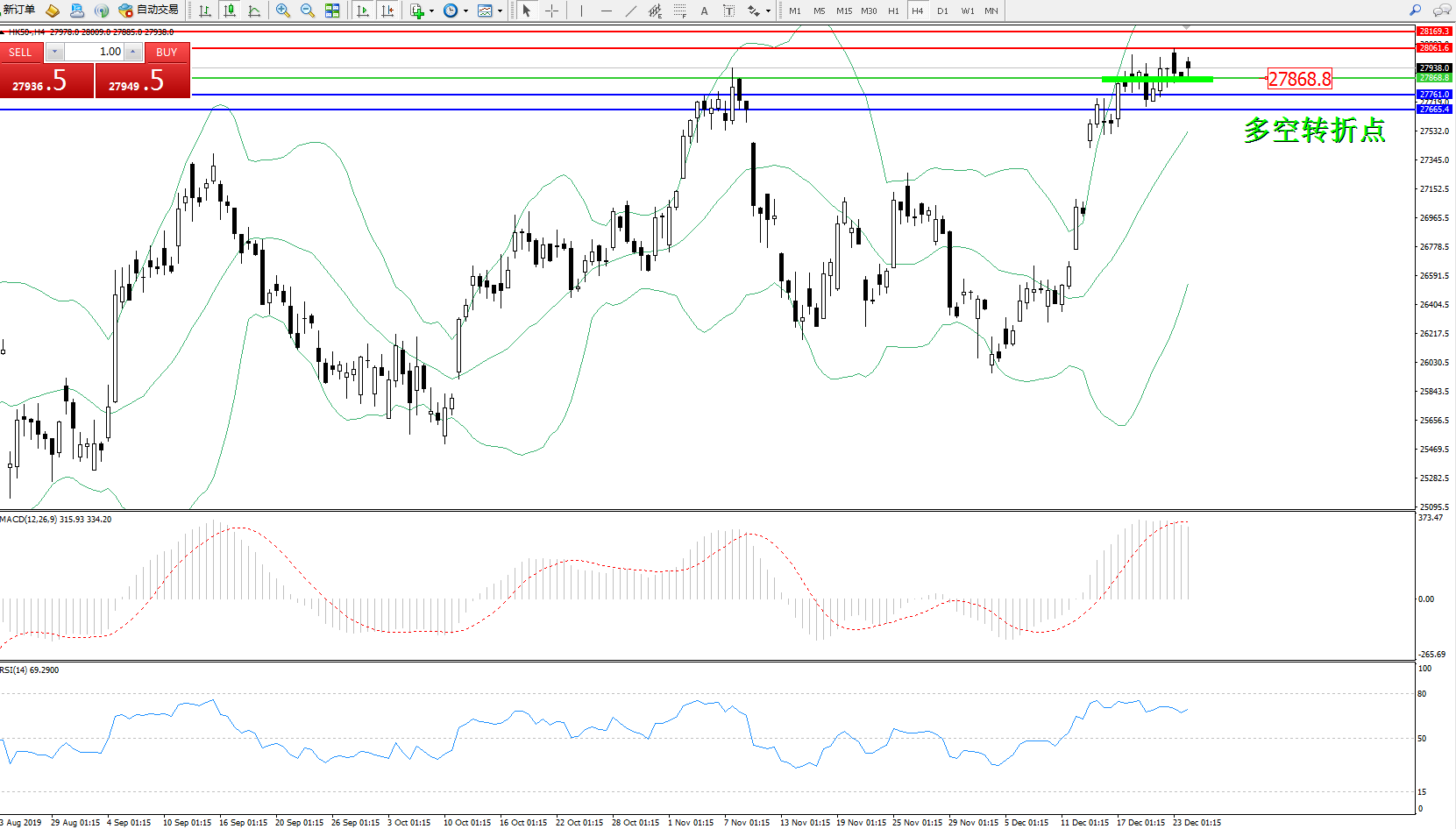 恒指HK50 ——4小时K线图显示: