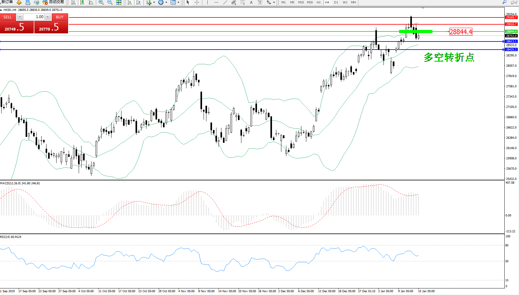 香港恒生指数1月15日(周三)收盘下跌111.55点,跌幅0.39%,报28773.59点;港股小幅高开随后再扩大升幅,尝试突破29000关口,但高见仅28972,未能成功。沽盘实时涌现,回落再倒跌,恒指最低见28644。恒指小幅回落,反映出市场风险投资情绪转趋谨慎。由于港股早前已累积颇大升幅,加上有不少股东减持消息,对市况有所影响亦属合理。至于升势是否已告一段落,则要视乎美股特别是科技股之表现。事实上,本轮科技股升幅理想,部分原因相信是与纳指强势有关。市场继续关注消息面的发展动向,港股较大概率以高位震荡盘整为主。