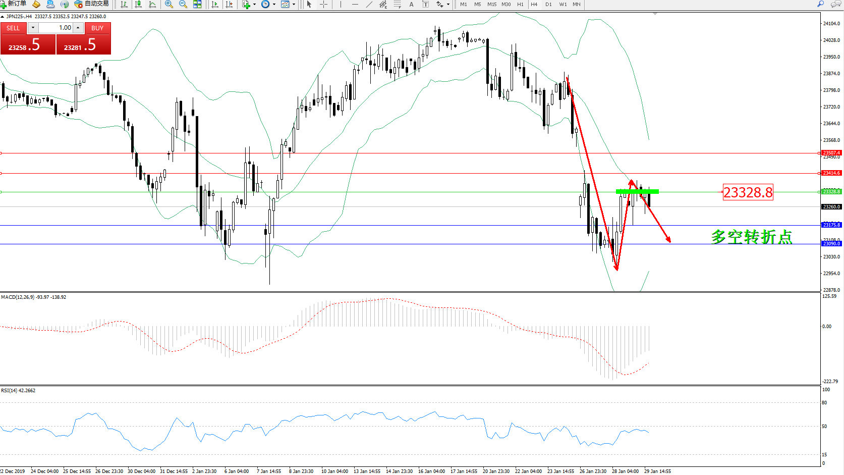交易策略:23328下方看跌,目标23175、23090