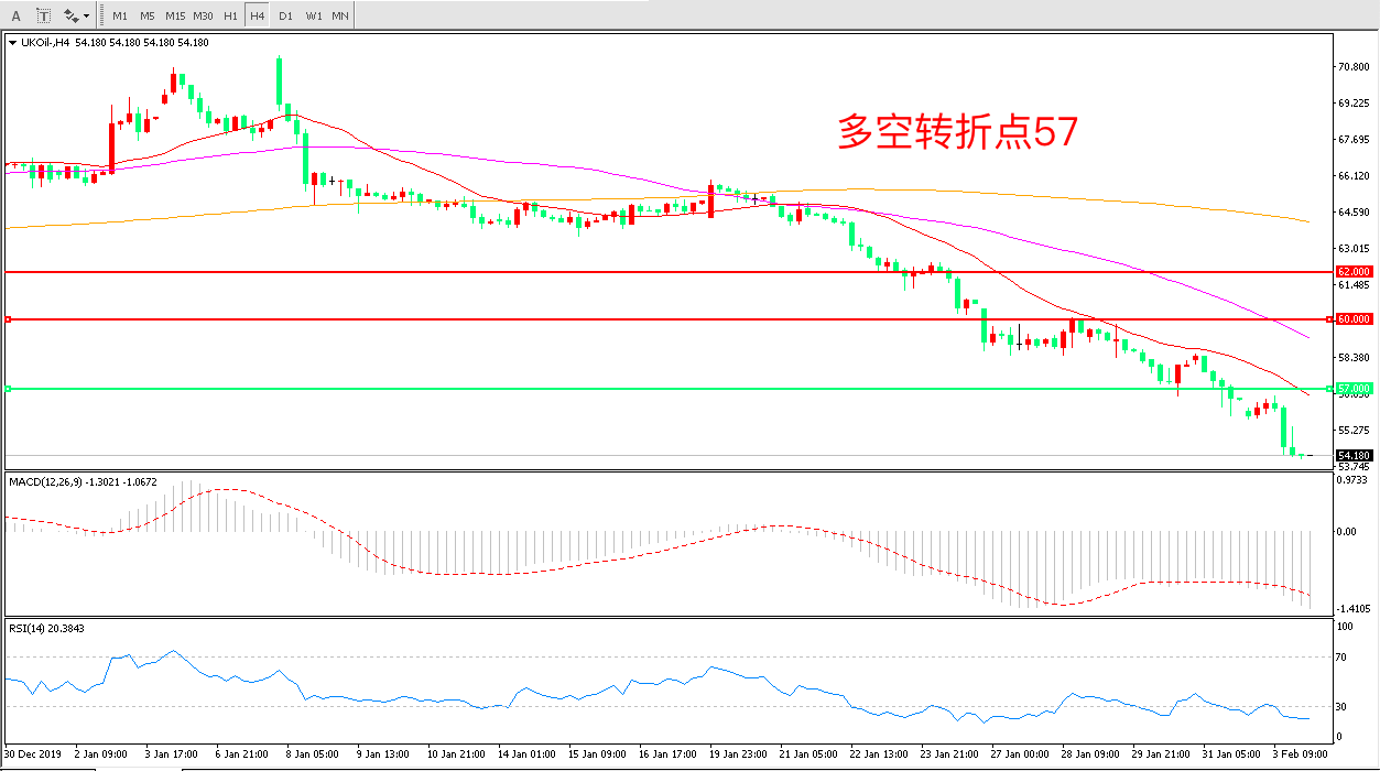 交易策略:在57.00 之下看跌,目标55.00 52.00
