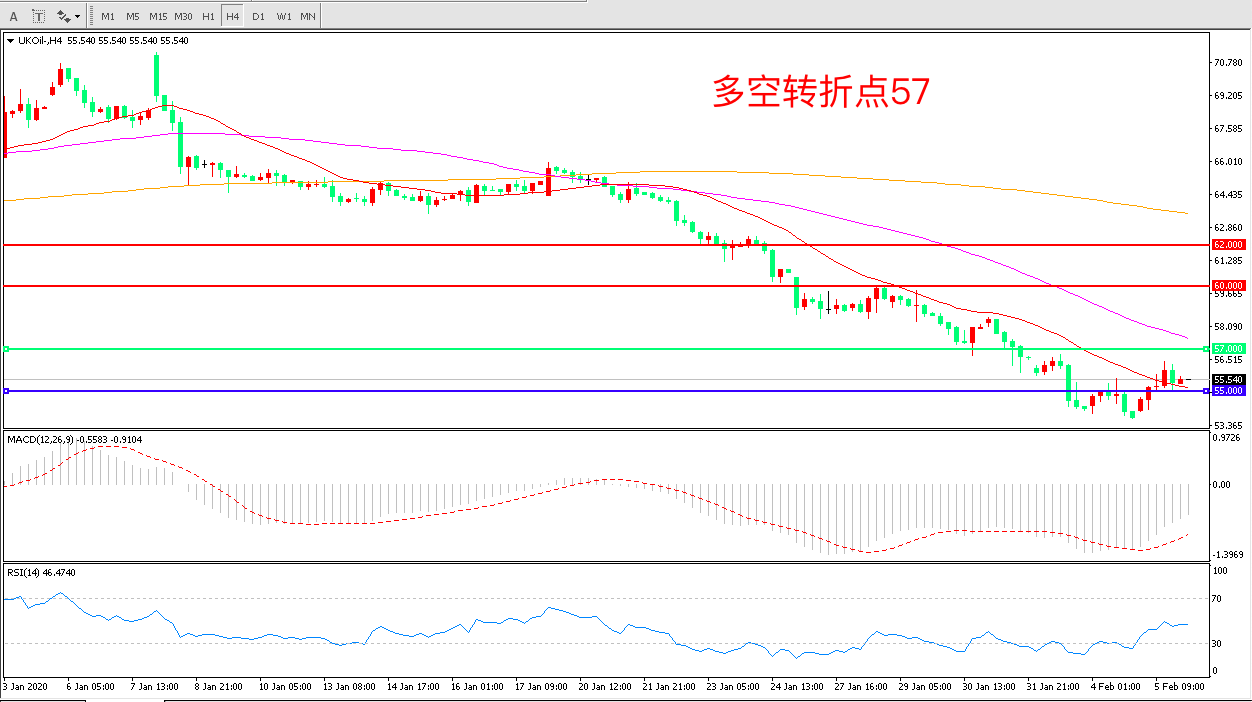 周三(2月5日),因疫情事件引发对需求的担忧有所缓解,且OPEC+考虑深化减产,布油自低位反弹,收报55.54美元/桶。据报道,OPEC及其盟国正在考虑于2月14日至15日举行紧急部长级会议,目前该组织正在举行技术会议以了解病毒的影响和提出建议,但在全球需求放缓,EIA库存增幅超预期的背景下,油价反弹高度仍然有限。