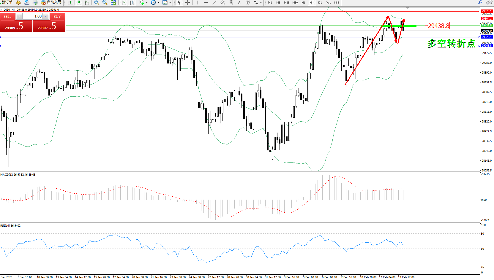 道琼斯指数213日(周四)收盘下跌128.20点,跌幅0.43%,报29423.24点。此前全球公共卫生事件的有关报道,引发了人们重新担忧疫情给全球经济造成的影响,市场资金有再度逃离股市迹象,美国1月未季调CPI年率高于预期,美国1月基本消费价格上涨;因家庭在租金和服装上支出增加,这一现象支持美联储通胀率将逐步上升至2%的目标的观点。机票、医疗、娱乐和教育价格的上涨也提振了1月份的潜在通胀。美国上周申请失业救济人数增长低于预期,表明劳动力市场持续强劲,而美国1月未季调CPI年率高于预期,强劲的经济表现降低了美联储持续宽松的预期。