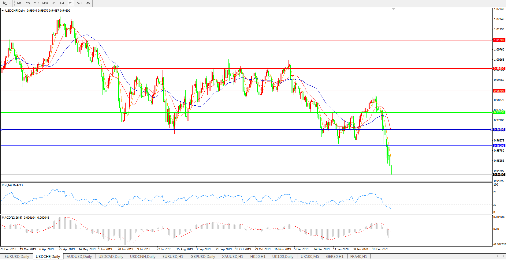 美元兑瑞郎USDCHF 日线图: