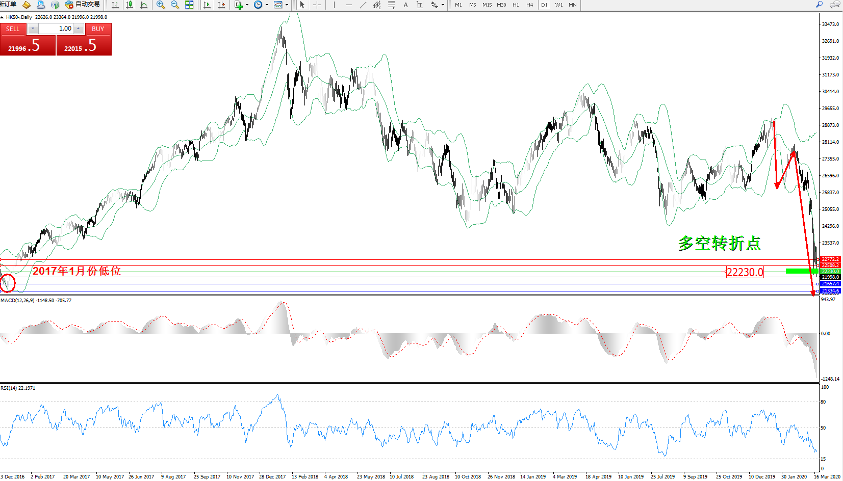 香港恒生指数3月18日(周三)收盘下跌971.91点,跌幅4.18%,报22291.82点;港股市场再现大跌行情,午后外围市场全部下跌,致港股午后开盘现单边下跌行情,尾盘国指跌幅一度扩大超5%,腾讯、中国平安等明显股皆重挫。市场再现恐慌情绪。主板成交量为1660.89亿港元,港股通大幅净流入70.42亿港元。。投资者避险情绪升温,亚洲股市纷纷转跌,欧股集体低开,而美股期货也再度熔断,三大股指期货全部触发下跌交易限制。有消息称,最大对冲基金桥水巨亏。美股今日再次暴跌,道指开跌约1200点,标普500指数盘中跌超7%,触发熔断,全市场暂停交易15分钟,恢复交易后道指继续下行,失守19000点,较2月高点跌超万点,但尾盘拉升,标普500指数一度收复2400点,纽交所:暂时全部转向电子交易,所有的电子交易将在下周一开盘时开始,股票和期权交易大厅将暂时关闭。