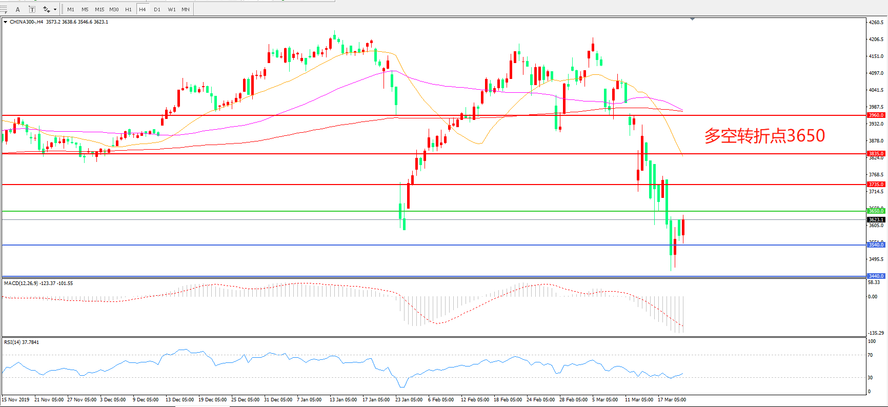 交易策略:在3650之下看跌,目标3540.00     3440.00