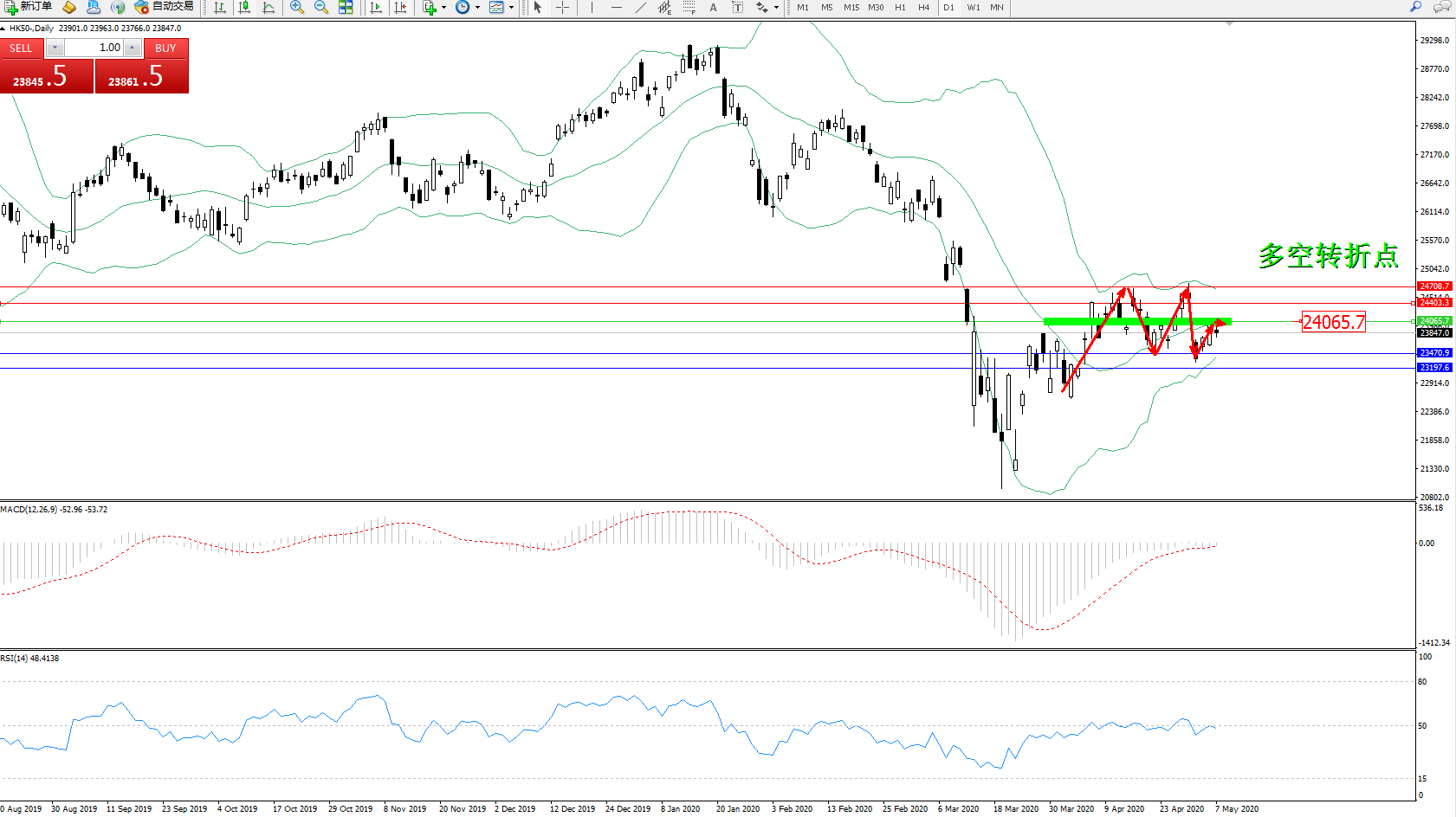 香港恒生指数5月7日(周四)收盘下跌156.85点,跌幅0.65%,报23980.63点;港股主要股指均收跌,大市成交量为865.5亿港元,南下资金净流入23.64亿港元。航空股、啤酒股、乳制品跌幅明显,三大航空股皆跌超2.5%。恒指国指成份股多数下跌,港交所绩后跌近3%,蒙牛乳业、比亚迪股份跌超2%。港股短期仍存在变数,但港股市场里的中资股估值较低,中长线价值依然较高。具体投资领域可以关注科技、医药等南向资金偏好的低估值成长股板块,银行、地产、必需消费、软件互联网等领域也受到机构关注。
